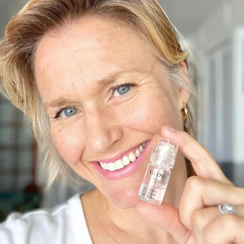 “Após apenas duas aplicações do Glow, meu pescoço flácido desapareceu e as linhas finas quase sumiram. A diferença entre a foto de antes, tirada há duas semanas, e a de hoje é impressionante. É realmente uma revolução.”